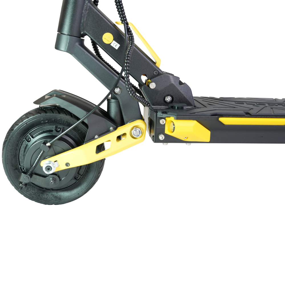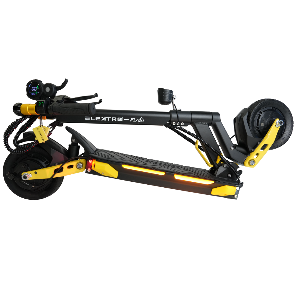 With front & rear swingarm suspension, hydraulic + electric brakes, and a rugged 22 kg frame, the Flash rides smooth, stable, and built like a tank — ready to take on city streets with zero downtime and maximum fun.